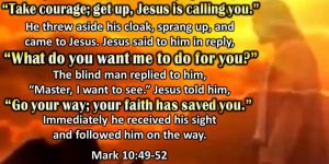 As Jesus was leaving Jericho with his disciples and a sizable crowd, Bartimaeus, a blind man, the son of Timaeus, sat by the roadside begging. On hearing that it was …