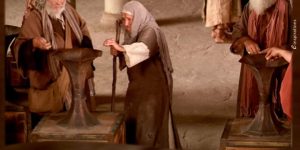 Jesus sat down opposite the treasury and observed how the crowd put money into the treasury. Many rich people put in large sums. A poor widow also came and put …